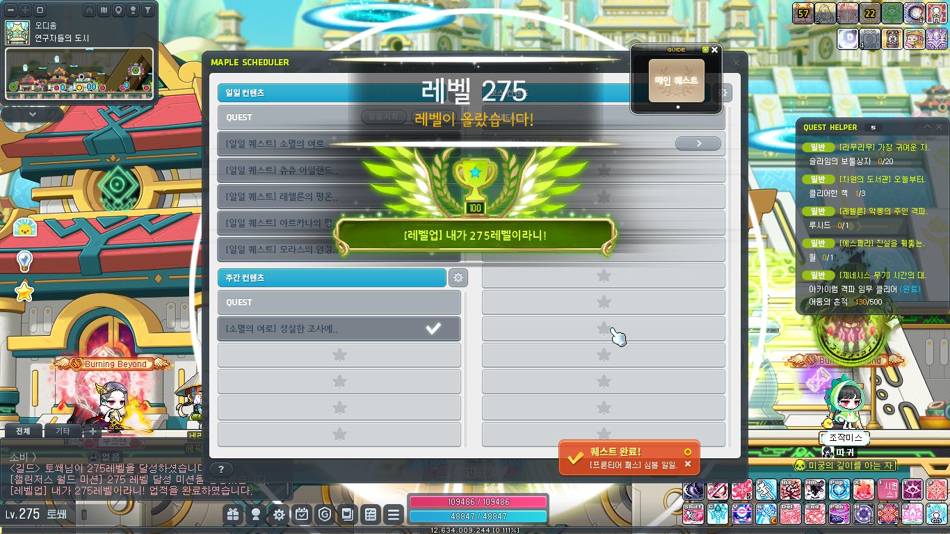 사냥은 많이 하진 않았고, 익몬 + 일퀘 + 몬파 + (에픽 던전 가끔)으로 275레벨 달성!