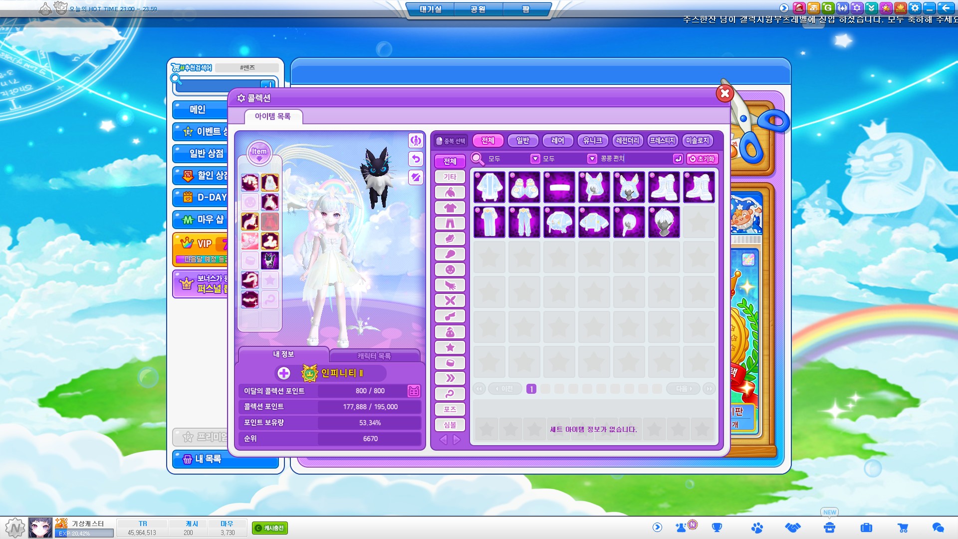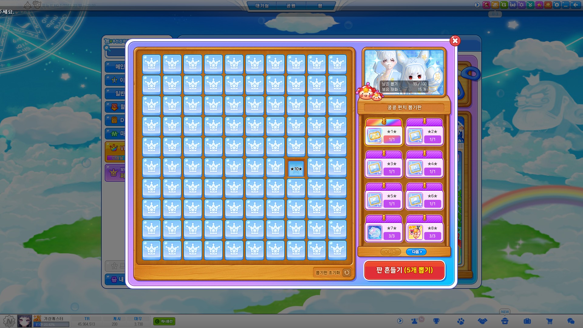 코인으로 열심히 뽑기판을 돌려 풀세트를 완성했다!